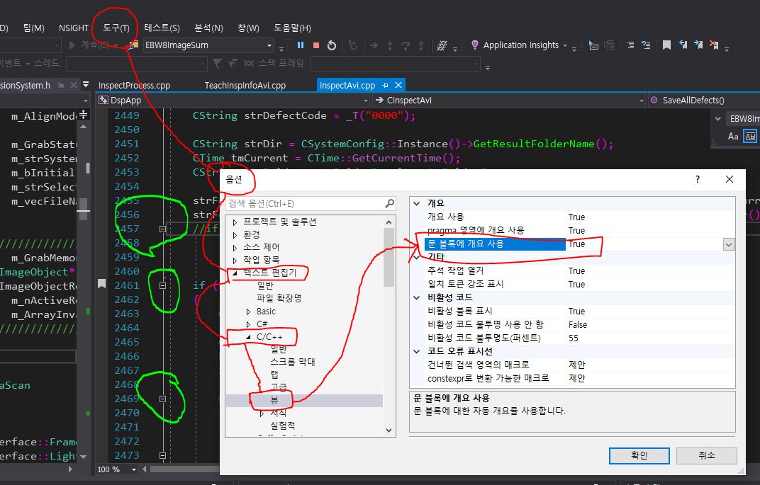 이것을 if문 for문과 같이 문장 블록 단위로 확장 축소를 하자.