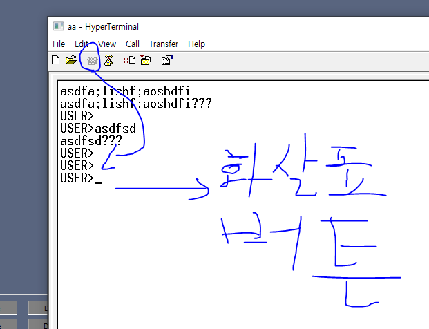 <연결 아이콘 클릭 및 엔터, -> 화살표 버튼을 눌러 "USER>_"출력 >