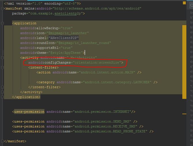 "<uses-permission android:name="android.permission.READ_PHONE_STATE" />"